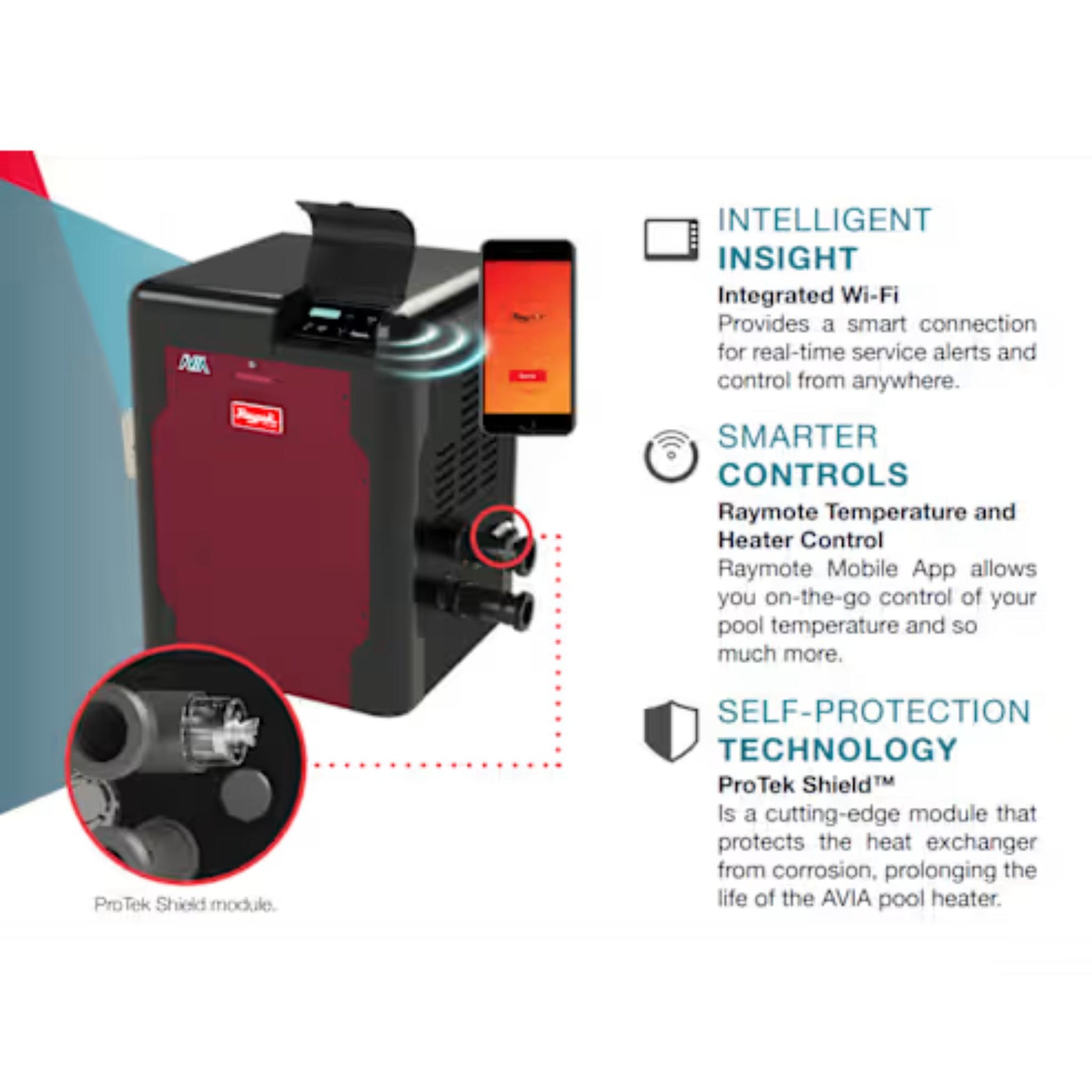 Raypak® AVIA 264K BTU Propane Gas Pool Heater – Smart, Wi-Fi Enabled, Cupro-Nickel | UPC 840891099239